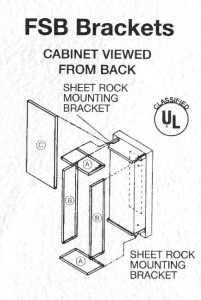 FSB180SR3-1 | Not Available | Fire rated cabinet with alarm | Height | 17.5″ | 14.125″ | 14.25″ | UL classified 1 and 2 hour wall integrity rated cabinet. Special designed SFB brackets with slots hold your fire rated type X sheet rock firmly in place. |